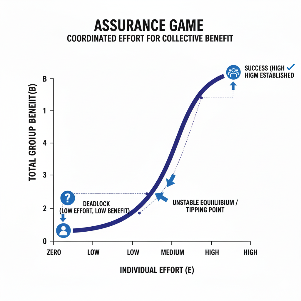 Economists have studied this for decades. When people act alone, effort feels wasted. When people know others are committed too, action becomes possible.